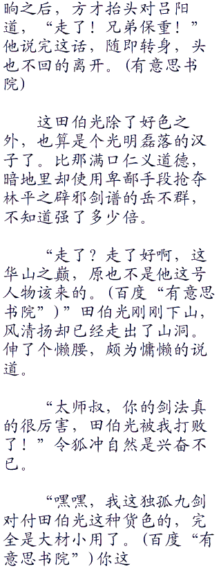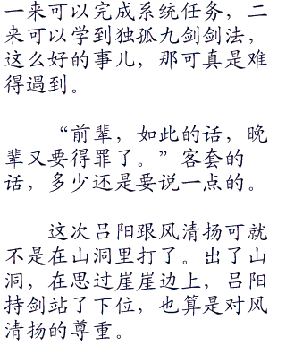 吕阳出了山洞,见令狐冲跟田伯光已经斗到了白热化的阶段。