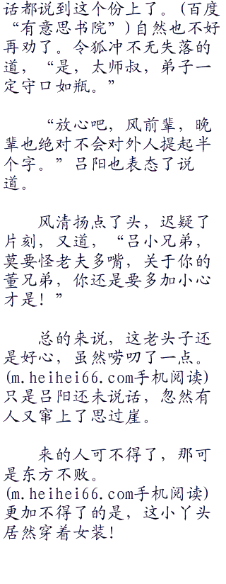 果然风清扬叹气转身,拂袖双手搭在后背,道,“令狐娃儿,吕小兄弟。老夫的事情,希望你们不要对外人提起。从今以后,我也不再见你们。如果你们还当老夫是前辈的话,就应了老夫的这个要求。”