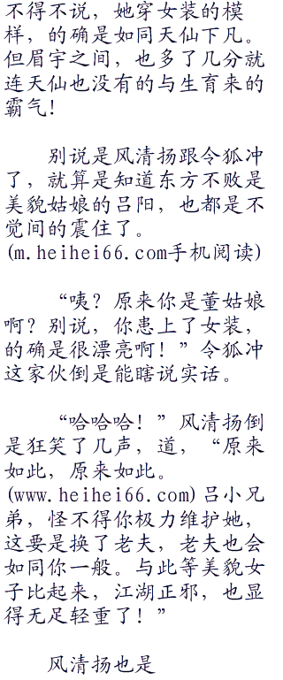 东方不败功夫不弱,只要不是风清扬出手对付她。吕阳倒也不是十分担心。趁着天还未亮,又跟风清扬拆了几招。