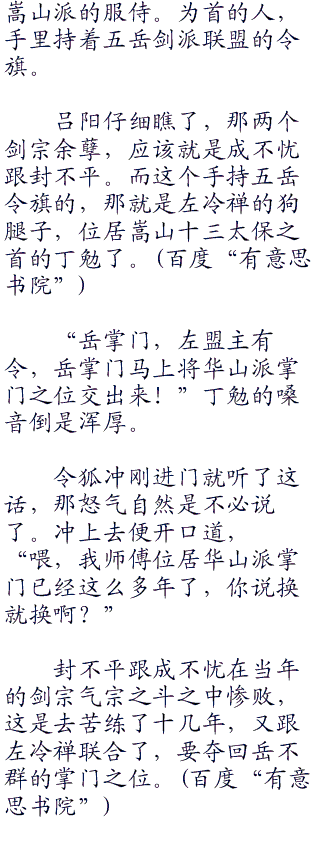 “是啊,吕大哥,你们赶快下去看看吧!”陆大有焦急也是有原因的,在岳不群的弟子之中,唯独令狐冲还算能够独当一面。
