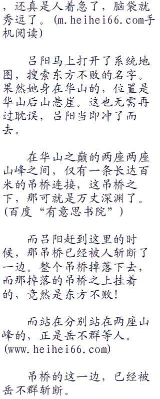 吕阳心中有些吃惊,寻遍了整个华山门派,都看不到岳不群等人的踪迹。吕阳的心里就越发惊惧了。难不成岳不群这伪君子得手了?尼玛啊!