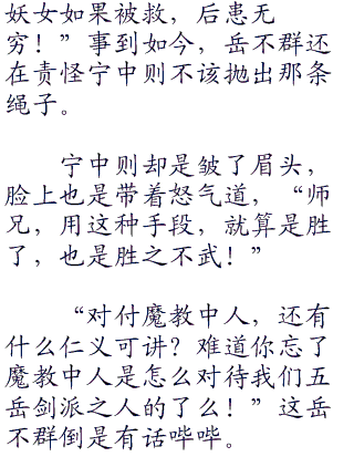 宁中则一定是从东方不败的步伐之中,确定了东方不败是魔教中人,将此事告诉了岳不群之后。岳不群自然要对付她,但又顾虑吕阳的神功,自然是想办法将吕阳调走,然后用毒计对付东方不败!