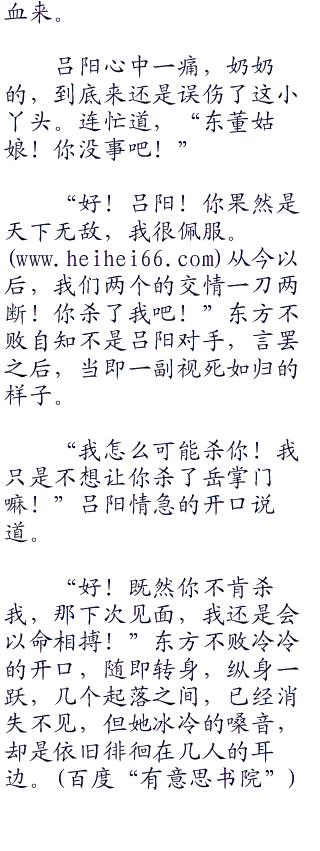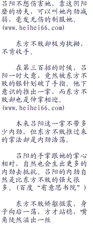东方不败出手也毫不手软,银针直刺吕阳的咽喉。吕阳对她,当然不舍得出剑。