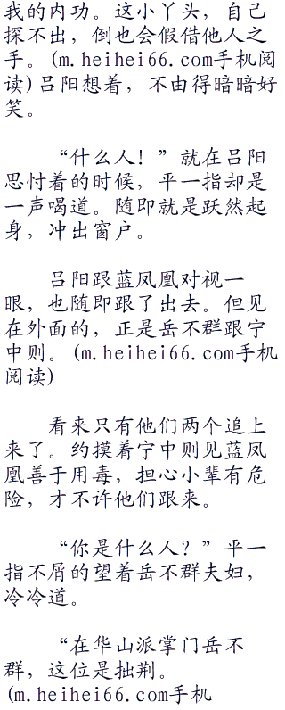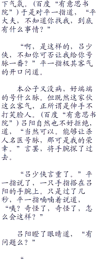 这杀人名医,果然还是医术高过武功的。他的武功也不是多厉害,江湖上的人也大多是吹捧他的。谁敢说自己没个病,患病的话,自然还是要来求这位平一指的。所以平日里也都先奉承了。