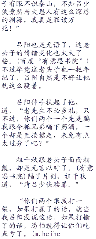 “你知道什么!你不知道我杀的是谁,我杀的是平一指他婆娘的一家五口!”老头子大声说道。