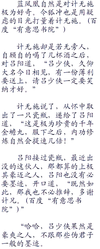 一夜无话。第二天正午时候,一干人也是在用餐。吕阳,令狐冲,蓝凤凰还是单独坐了一桌,岳不群等人坐一桌。似乎吕阳这三人是一路人,岳不群那一干人是一路人。