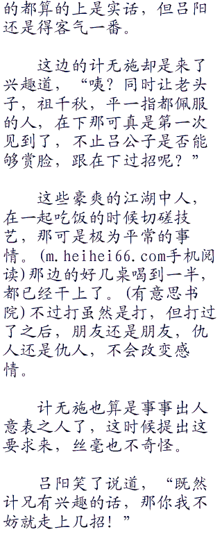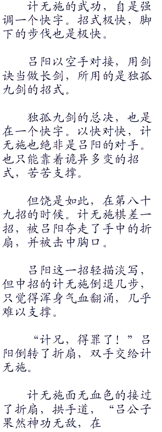 吕阳露的这一手,足显内功比计无施高出太多。人群自是安静了片刻,自然是为吕阳的内功修为所震撼。