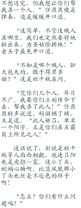 吕阳假醉,闭着眼睛,却也听到周围的喧闹之声逐渐的安静了下来。自己也被人扛起来。这人跃起来一上一下,约摸着是老头子。