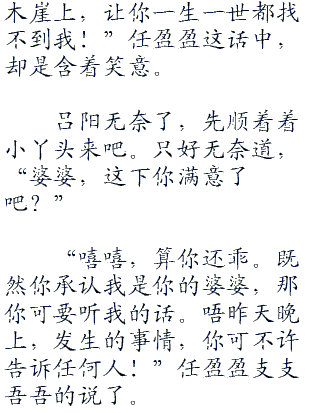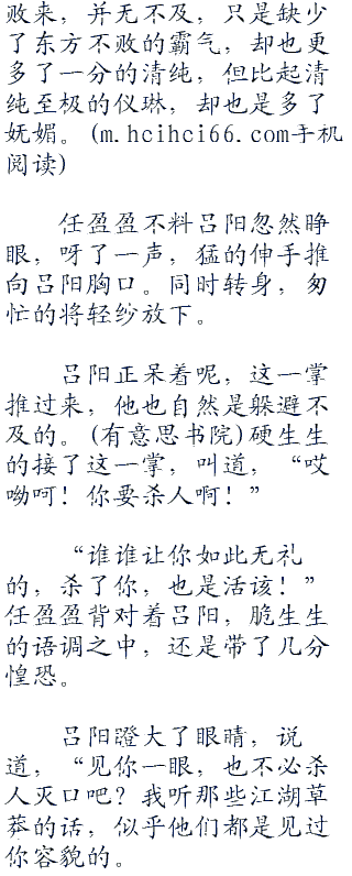 “我叫他们杀你,你可就不能离开我的身边了。否则魔教的人那么多,就算你的武功再高,恐怕也不是他们的对手了。只有在我身边,你才能安全,知道了吗?”任盈盈又是脆生生的说道。