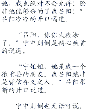 一夜之间悠然而过,第二天清晨吕阳醒来时候,东方不败依旧趴在他的胸口之上。吕阳嗅得到她发髻上的芬芳,他才确定这一切都是真的,不是一场梦境。