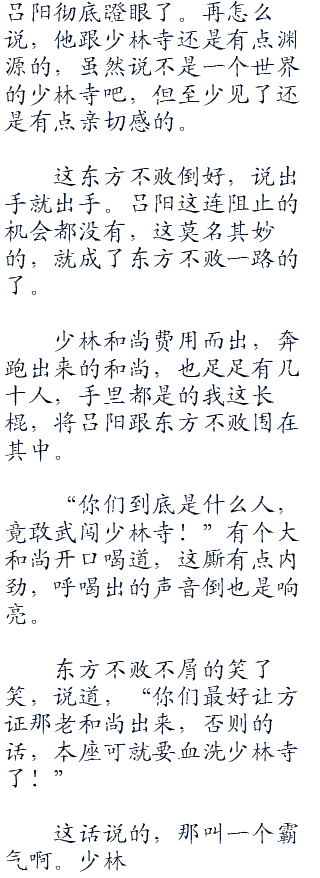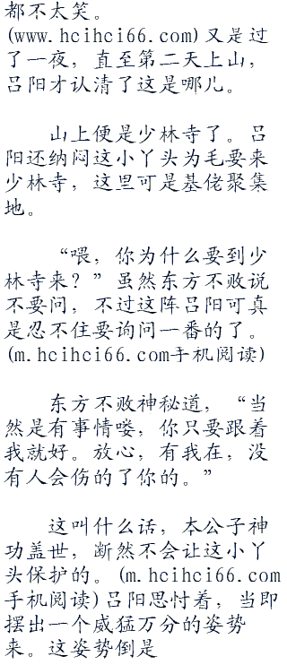 吕阳跟在东方不败身侧,偶尔说些笑话。也不知是这东方不败笑点太高还是怎么,