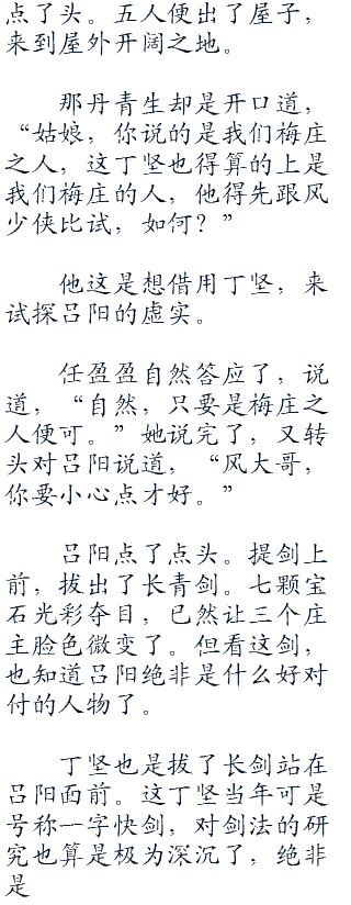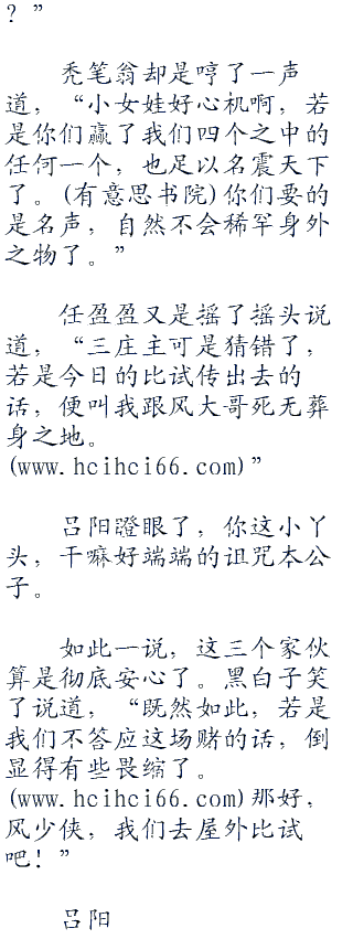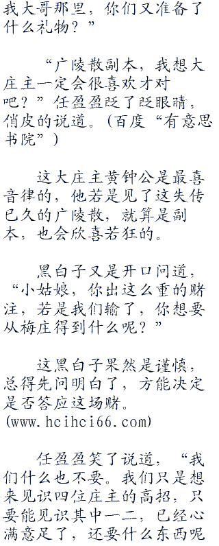 “若是梅庄之中任何一个人胜过我风大哥呢,那这本呕血谱,就送给二庄主你了!”任盈盈说着,从包袱之中取出一本棋谱,道,“这呕血谱之中,记载了刘仲甫对骊山仙姥的棋局,除此之外,还有许多传说之中的棋局,二庄主自然喜欢。”