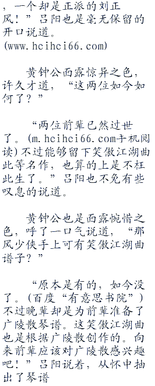 “我说大哥,切莫说真假,若是这姑娘手里有这么一本广陵散副本的话,大哥你想不想一见?”这话说的,那是极具杀伤力的。