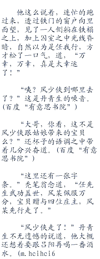 任我行见了这钢锯,又是笑了说道,“哈哈哈哈!小兄弟,我任我行就要逃离这鬼地方了,你拦不拦我?”