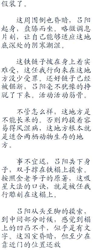 主要是任我行一定是将吸星**留在这囚牢之中,吕阳对这吸星**颇有兴趣。这幅精钢铸成的铁链已经被任我行锯出口子,要逃脱这里,对吕阳自然不是难事。