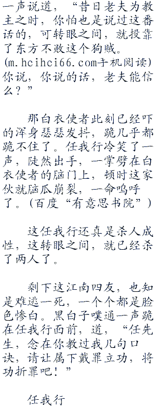 三人踏进正厅,黄钟公的脸色已经全然没有血色了,颤声道,“任任我行,你怎么会在这里!”