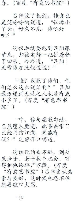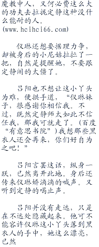 吕阳眼见定静是撑不住了,定静若是被撂倒,那仪琳这么漂亮的小丫头落在这帮黑衣人的手里,难保这些混蛋不会起邪心。
