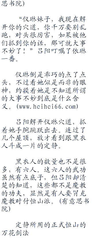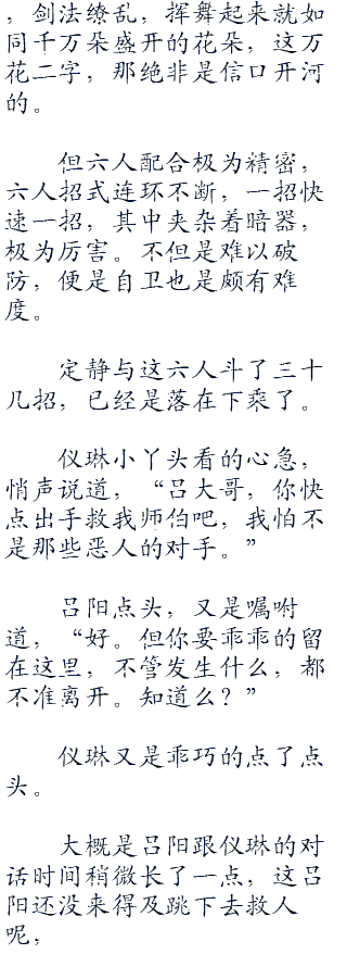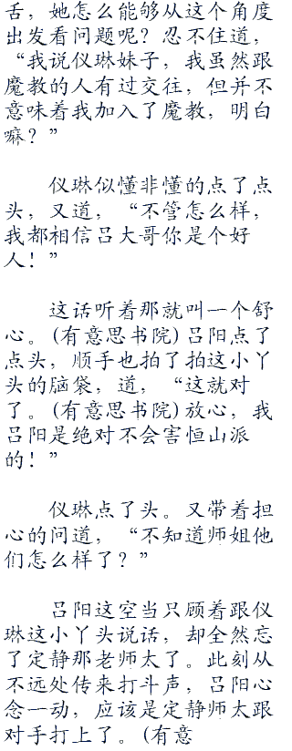 仪琳皱着眉头,怯生生的点了头。定静带着仪琳出了福来客栈,吕阳自然也是一路跟了过去。