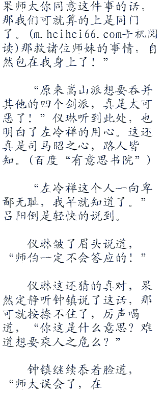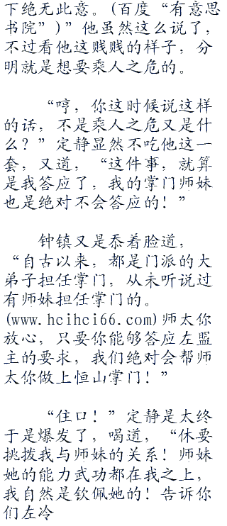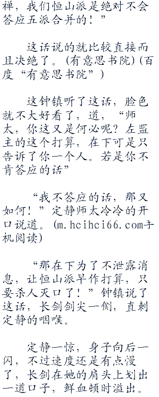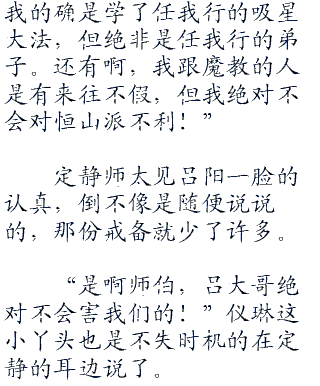“果然是魔教妖人!”定静切齿,顿了顿,又道,“不知阁下有没有看到恒山派的其他弟子?”