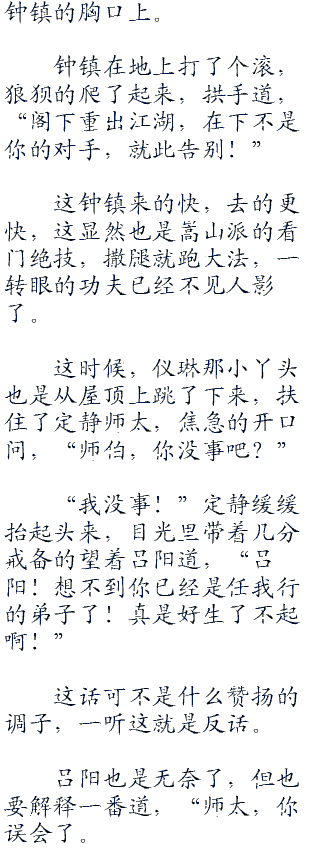 这人杀退了六人,转身对定静拱手说道,“定静师太,在下嵩山派钟镇。”