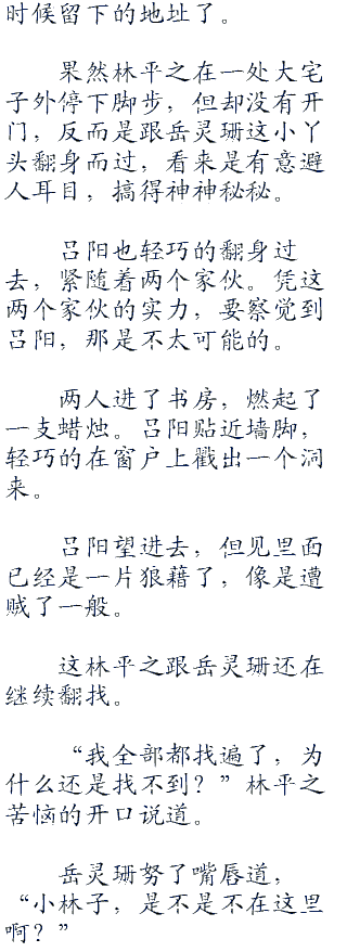 夜深人静时候,却又一个俏丽的身影,从林子中走出来。趁着月色,吕阳看的清楚,却是仪琳。
