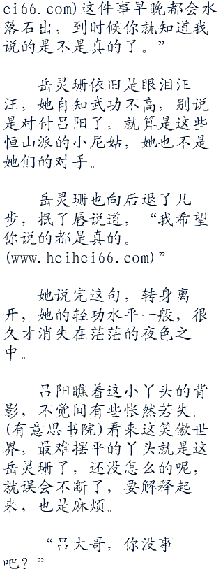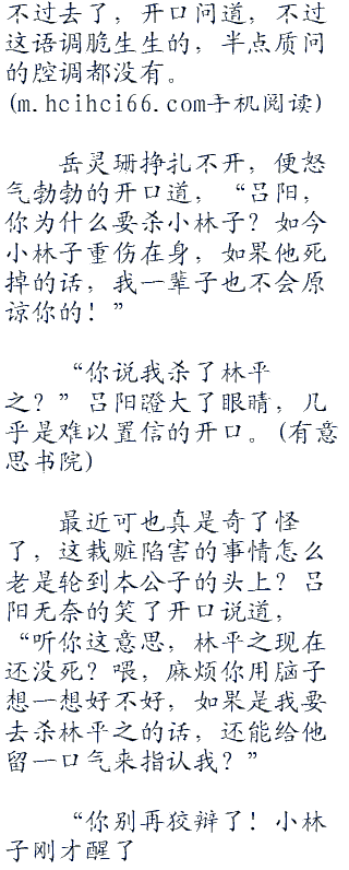 吕阳只是施展少林的小擒拿手,尽量的拿住岳灵珊的手腕而不伤害她。制住了这小丫头,便开口问,“喂,到底发生了什么事,你先说清楚行不行?”