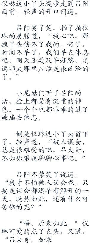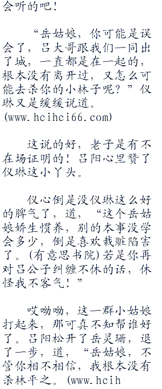 “岳姑娘,你干什么好端端的对吕大哥动武呢?”仪琳实在是看