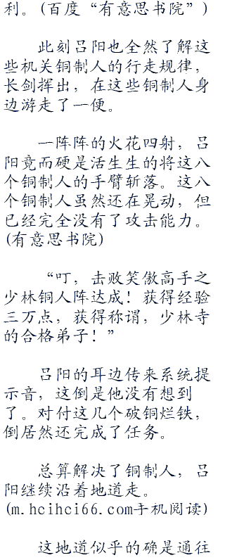 这样吕阳可就占不到什么好处了。唯一压倒性的优势便是可以理由轻功,迅速的在这些铜制人身边游走。