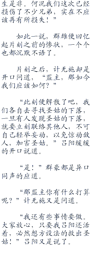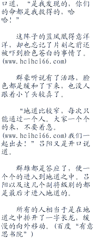 吕阳边游走着边思忖,这不是办法,如果这条路真的是通往山下的话,那那些豪杰也要打这里走,这些铜制人在这里始终是碍事,看来得速战速决才成。