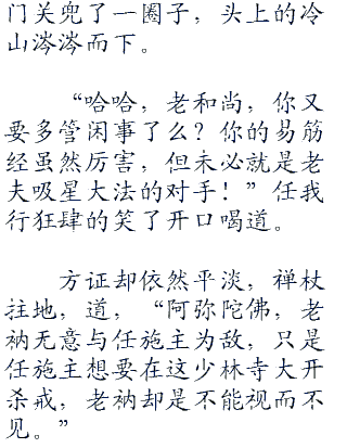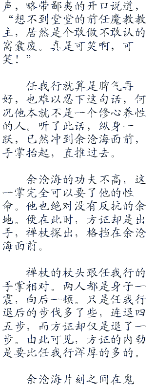 任我行不怒反笑了说道,“哈哈,拾人牙慧,就冲这一点,你左冷禅也入不了老夫的法眼!”