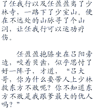 “爹!让女儿跟她们打!”任盈盈却是脆声开口说道,她要冲上前去,却被任我行拦住。