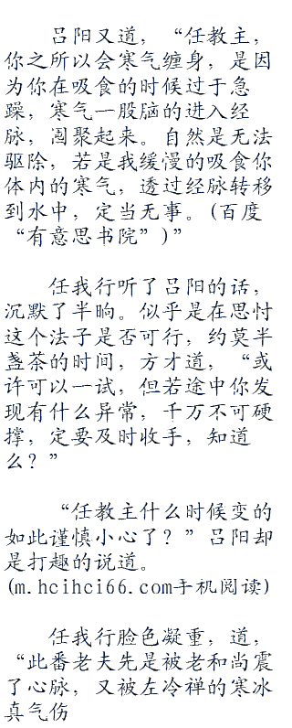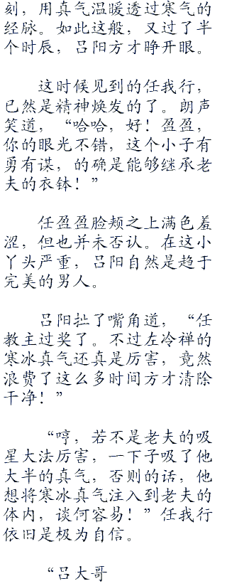 “哇!”任我行忽然吐了一口血,打断了吕阳的沉思。他回头的时候,正看到任我行脸色发青,