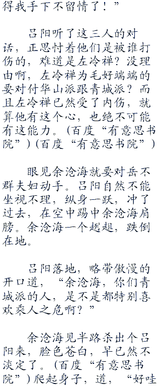 吕阳悄然的忘过去,见奔走过来的,却是岳不群,宁中则以及余沧海三人。