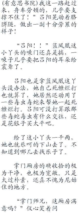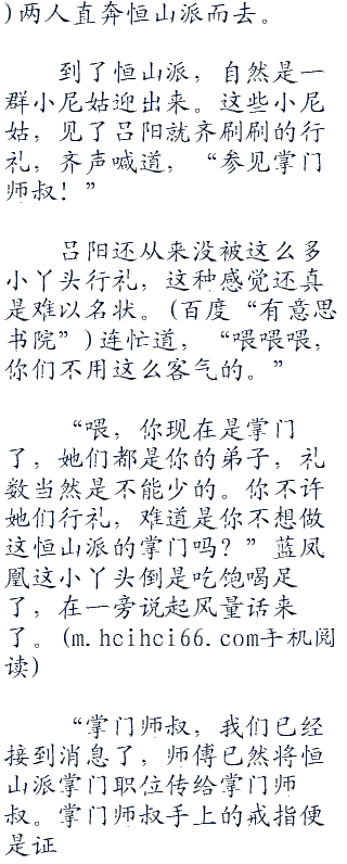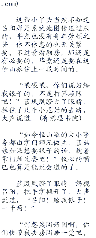 蓝凤凰无奈,只好耸肩道,“不是我要找你,是恒山派的那群小尼姑托我找你的。还说如果我找到了你,并且把你带回恒山派的话,就给我一千两银子!我想这买卖不错,所以就接下喽!”