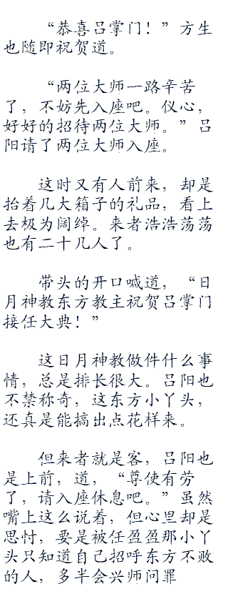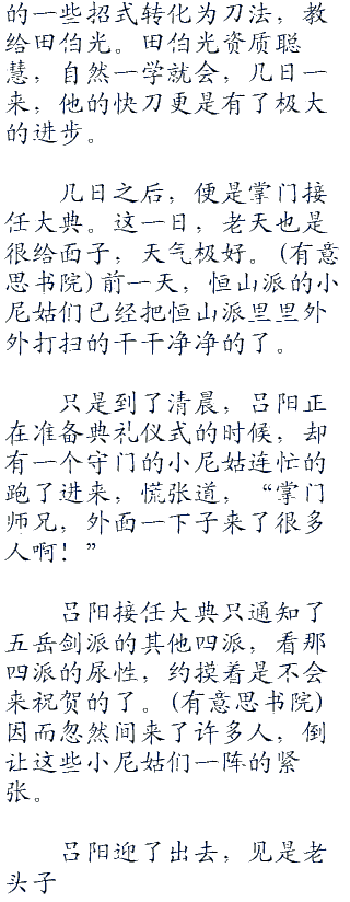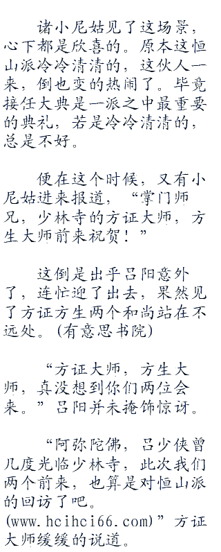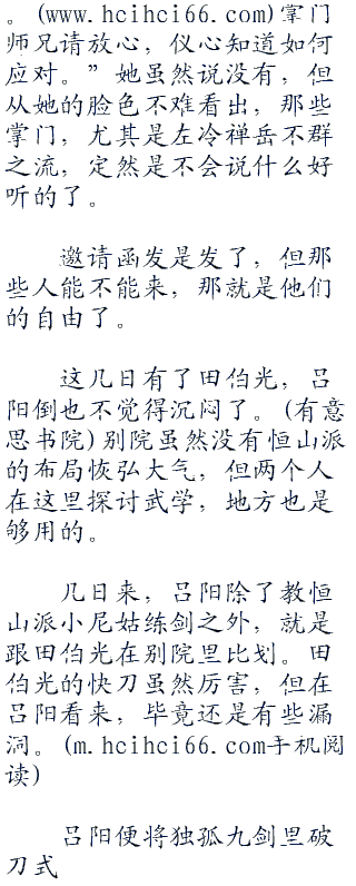 好在恒山派在后山还有一处别院,通常是用来招待来访客人。此刻正是空着,地方也是够大,可以让田伯光暂时在别院住了。
