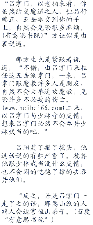 吕阳听到此处,不由得疑心开口问,“难道左冷禅还有吞并少林武当的野心么?”