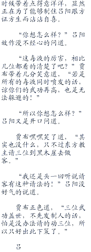 方证又是跟方生对视了一眼,方才道,“吕掌门,一月之后,左冷禅邀请五岳剑派去嵩山谈论五派合并之事。老衲想,若是这合并之事能够通过,那么掌门必然是通过比剑选出。”