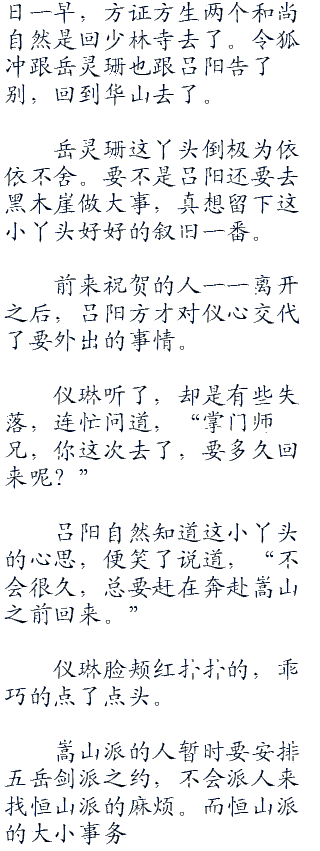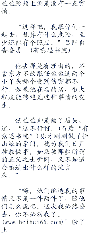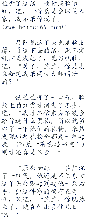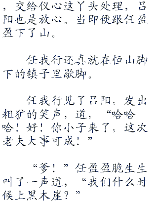 两个大和尚见了任盈盈古灵精怪的样子,也是哭笑不得。
