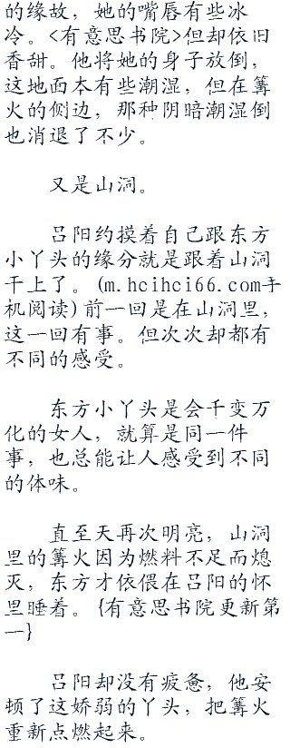 直至天再次明亮,山洞里的篝火因为燃料不足而熄灭,东方才依偎在吕阳的怀里睡着。