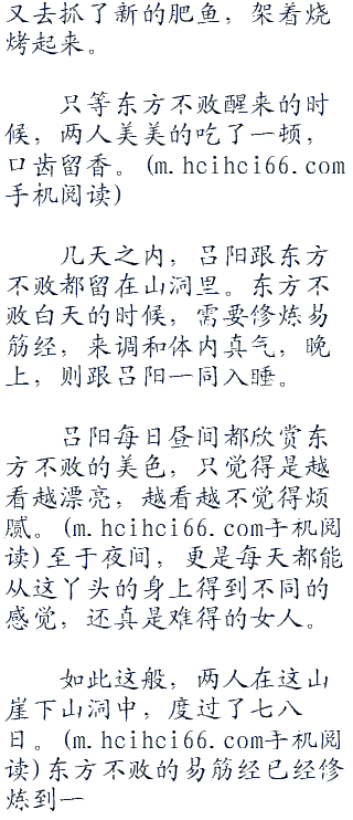 几天之内,吕阳跟东方不败都留在山洞里。东方不败白天的时候,需要修炼易筋经,来调和体内真气,晚上,则跟吕阳一同入睡。