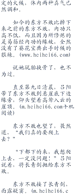 如此这般,两人在这山崖下山洞中,度过了七八日。东方不败的易筋经已经修炼到一定的火候,体内两种真气已然调和。
