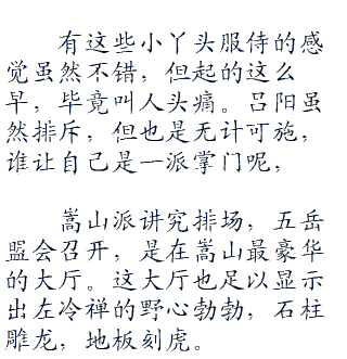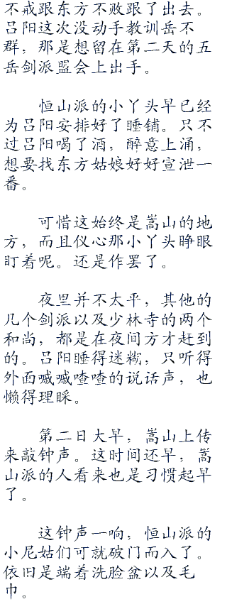 第二日大早,嵩山上传来敲钟声。这时间还早,嵩山派的人看来也是习惯起早了。