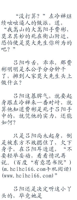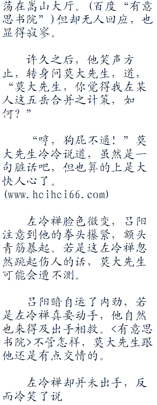 “哼,狗屁不通!”莫大先生冷冷说道,虽然是一句脏话吧,但也算的上是大快人心了。