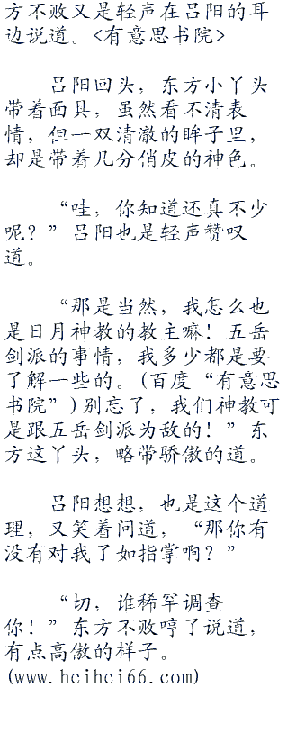 “那是当然,我怎么也是日月神教的教主嘛!五岳剑派的事情,我多少都是要了解一些的。别忘了,我们神教可是跟五岳剑派为敌的!”东方这丫头,略带骄傲的道。