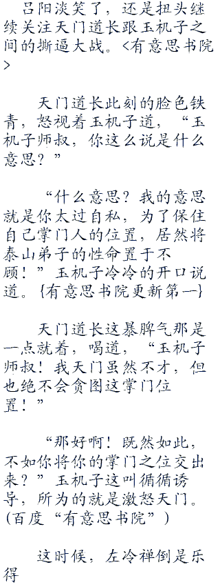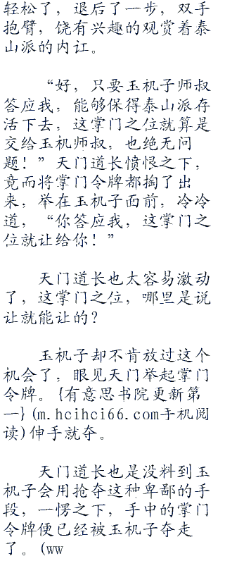 这时候,左冷禅倒是乐得轻松了,退后了一步,双手抱臂,饶有兴趣的观赏着泰山派的内讧。