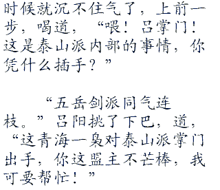 左冷禅这时候就沉不住气了,上前一步,喝道,“喂!吕掌门!这是泰山派内部的事情,你凭什么插手?”