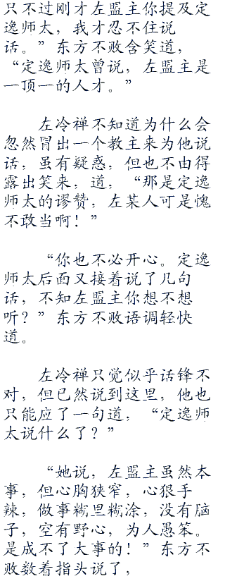 “你也不必开心。定逸师太后面又接着说了几句话,不知左盟主你想不想听?”东方不败语调轻快道。