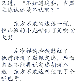 左冷禅的脸颊憋红了,他前话说了敬佩定逸,后面自然不能再说定逸胡说八道。东方不败这叫他吃了个哑巴亏。