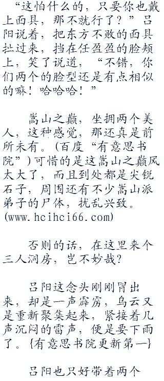 嵩山之巅,坐拥两个美人,这种感觉,那还真是前所未有。可惜的是这嵩山之巅风太大了,而且到处都是尖锐石子,周围还有不少嵩山派弟子的尸体,扰乱兴致。