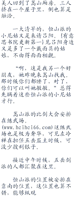 一大清早的,恒山派的小尼姑又是来请吕阳。见吕阳身边又是多了一个戴面具的姑娘,不由得面面相觑。